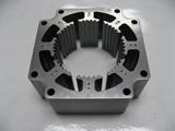 材 質: 50A800 サイズ: 60mmX60mm 加工法: 試作型(プレス積層) 特 徴: ステッピングモータ用(ステータ)